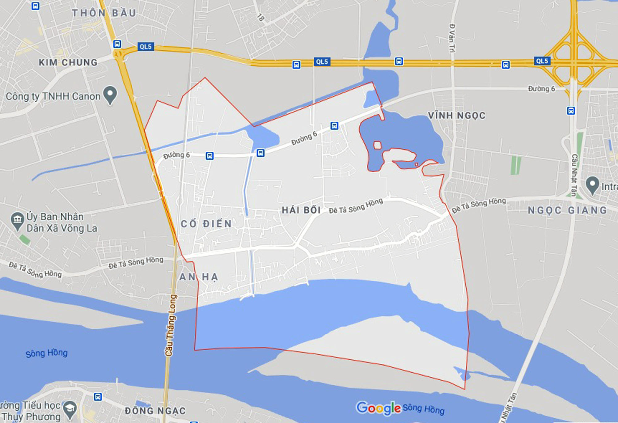 Sơ đồ tuyến nối đường 6 với Hoàng Sa đoạn qua địa bàn xã Hải Bối. (Nguồn ảnh: Google).
